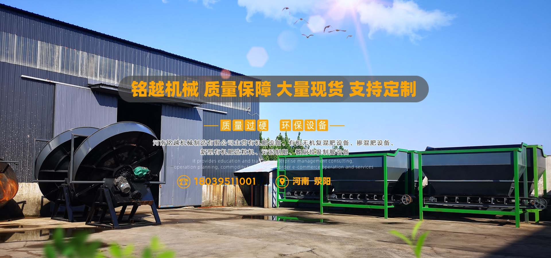 河南銘越機械是一家專業生產有機肥生產線和復合肥生產線設備的技術企業,有著多年的機械加工史,公司位于鄭州市上街區。銘越機械引進了大中型金加工設備,其中加工中心10臺,激光切割機3臺,各類設備總計100多臺。主要產品:1-30萬噸尿基、氨酸造粒、復合肥生產線;1-20萬噸有機肥、無機肥料、垃圾、污泥等有機廢棄物無害化處理制肥設備。銘越機械將遵循“服務營銷”理念,一如既往,充分有效利用資源優勢、人才優勢、研發優勢等,以更好的產品、更好的質量,全新的形象,為用戶提供更優的服務。 我廠生產的設備,具有選材考究、設計合理、外形美觀、質量可靠、操作簡單、占地小、省工省電、產量高。河南銘越機械自成立以來,始終堅持“思路決定出路,人品鑄就產品”的經營理念。